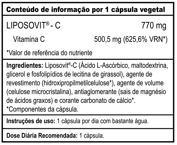 VITAMINA C LIPOSSOMAL – Suplemento alimentar à base de vitamina C lipossomal.